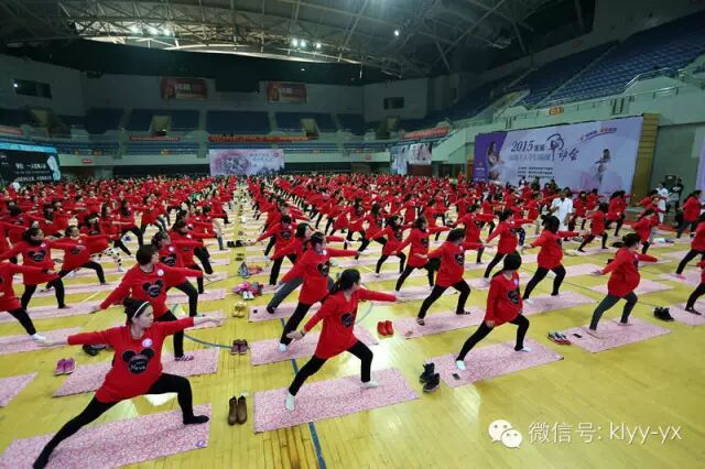 2015年11月29日,江苏南通体育会展中心举办千人孕妇瑜伽“孕”动会,上千名时尚孕妈妈们的积极参与齐做瑜伽。